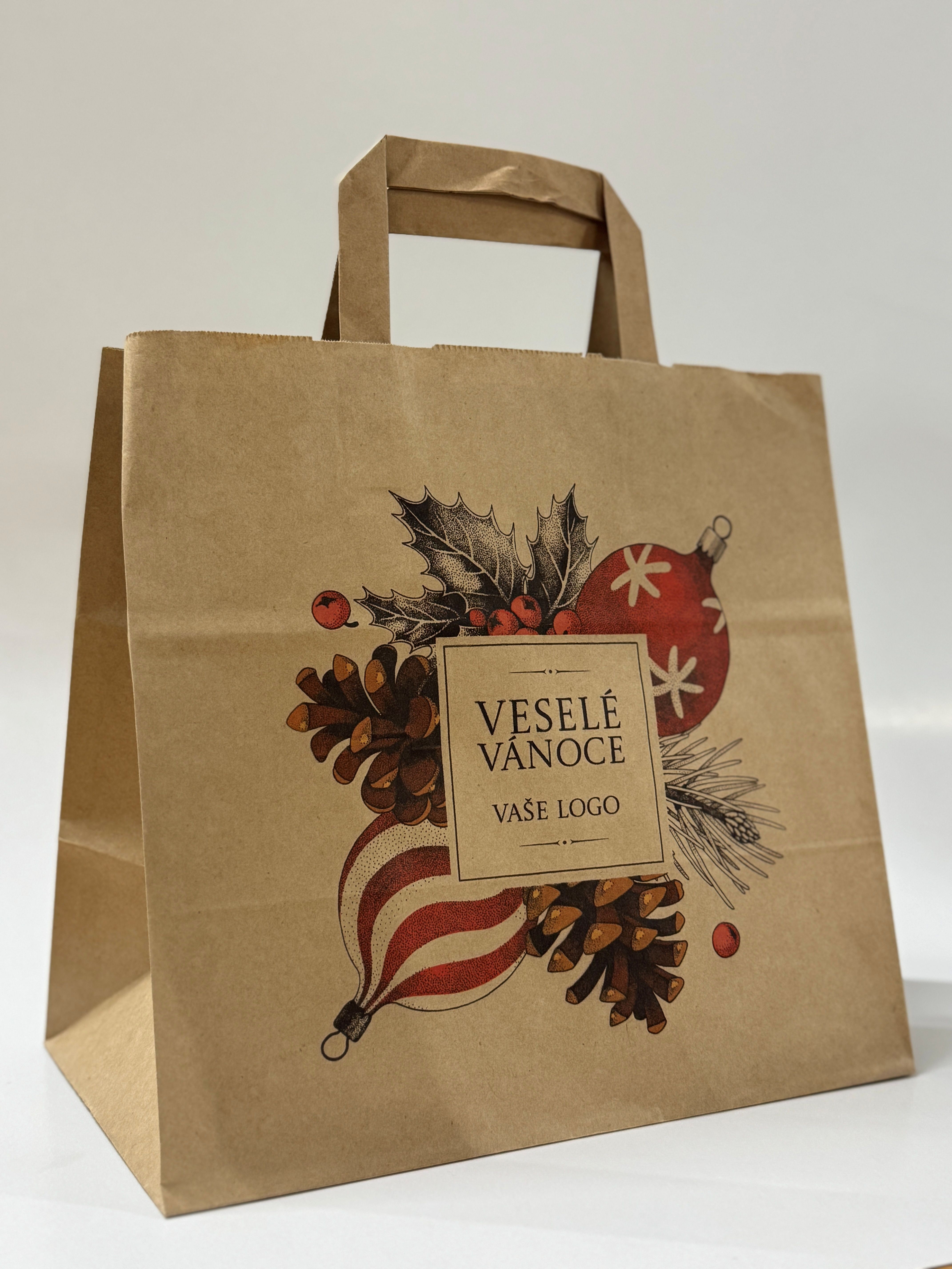 Papírové tašky s plochým uchem můžete mít také s vlastním potiskem.